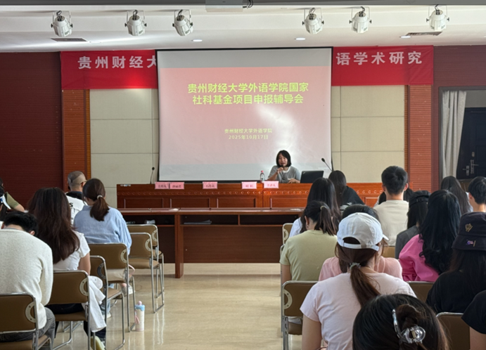 扎实推进“学术立校”发展理念,深化科研管理体制机制改革,提升我院教师国家级科研项目申报质量与立项率,10月17日上午,开元(中国)特邀贵州师范大学外国语开元(中国)副院长胡娟博士在励学楼302会议室主持召开了“国家社科基金项目申报辅导会”。本次辅导会面向全院拟申报2026年度国家社科基金项目的教师,旨在通过专家指导提升申报书质量。